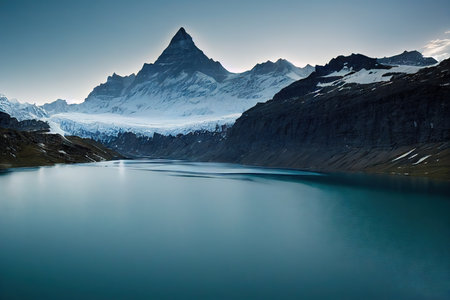 Snowy Mountain Range with Lake. Generative AI