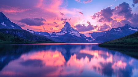 Matterhorn peak reflected in the lake, Zermatt, Switzerland with AI-Generated Images