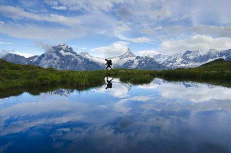 The Bachalpsee, little lake over Grindelwald where the alpine peaks are reflecting themselves