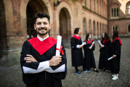 Portrait of man students at graduation, Graduating undergraduate student, Celebrating Graduation, University graduation.