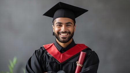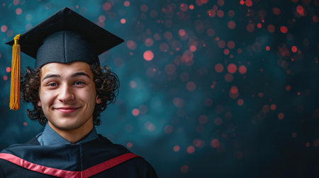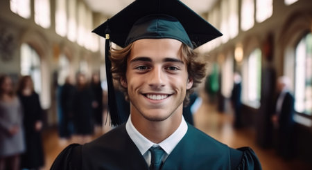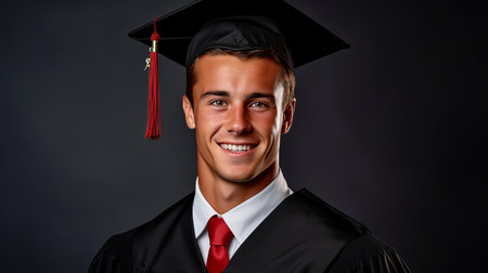 Happy graduate wearing cap and gown celebrating academic achievement with a smile. Concept Congratulations, Graduation, Academic Achievements, Smiling Faces, Cap and Gown