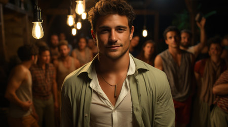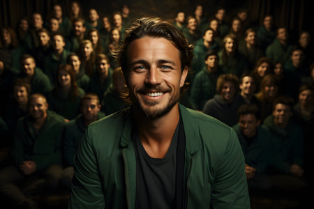 Confident man stands out in busy crowd, radiating charisma
