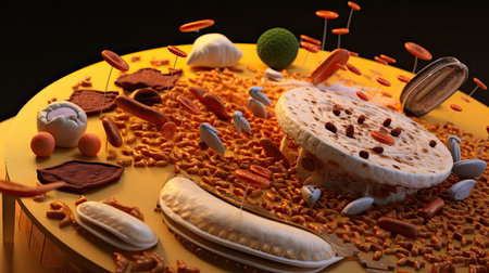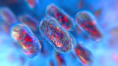 Close-up view of bacteria in a vibrant microscopic world, showcasing intricate details and colorful structures.
