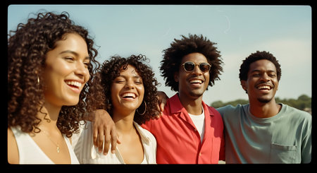 A group of diverse friends smiling and gathering close together