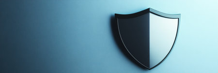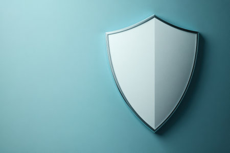 A shield symbol rests on a teal background, designed to evoke feelings of safety and security. The smooth texture contrasts the vibrant color, creating a modern look.