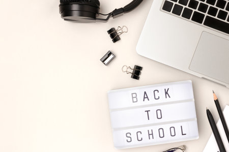 Back to school background. Words on the white lightbox.