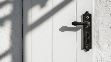 A close-up of a white door handle casting interesting shadows. This image captures the simplicity and elegance of architectural details in a home setting.