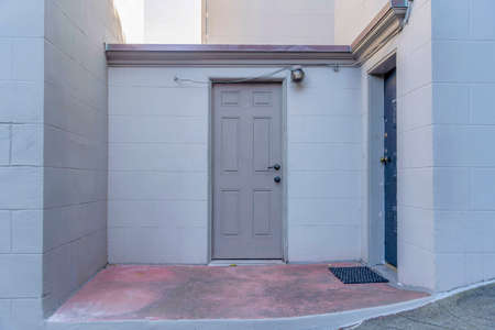 Employee Entrance Industrial Backdrop or Background with White Block Walls.