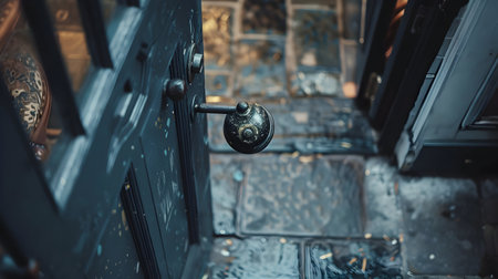 A close view of a door lock and key showcases intricate details in soft lighting, highlighting a sense of security near a family home.