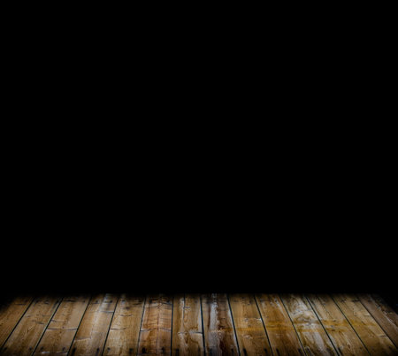 A black room with a wooden floor