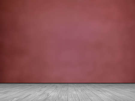 3D illustration of light brown wooden board corner and burgundy red wall. Computer rendering product background.