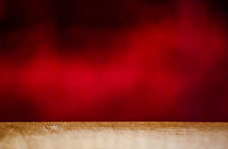Old wood table with smoke in the dark background.