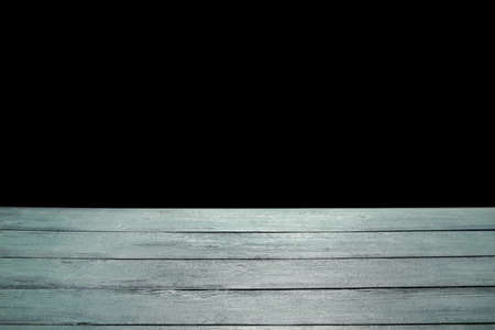 Blue wooden table top on black background