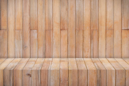 Wooden table and wood wall in vintage style