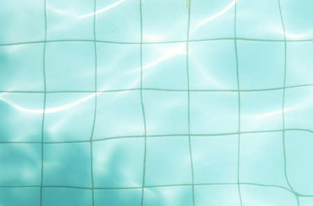 Top view of swimming pool bottom caustics ripple and flow with waves background. Summer background. Texture of water surface.
