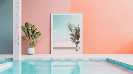 Interior of a swimming pool with a picture frame. 3d rendering