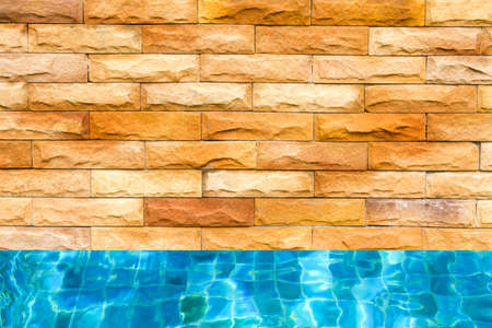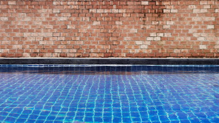 Old red brick wall texture with swimming pool