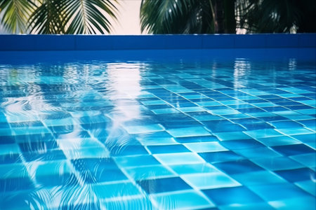 Surface of the pool with blue water