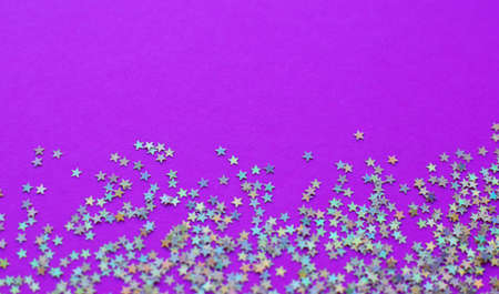 Background of shiny little stars on a bright background. Selective focus. Christmas concept. Glitter texture.