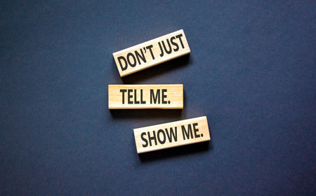 Tell or show symbol. Concept words Do not just tell, show on beautiful wooden blocks. Beautiful black background. Business tell or show concept. Copy space.