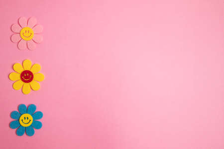 Valentine day greeting concept hearts decoration on bright background top view, copy space. flat lay