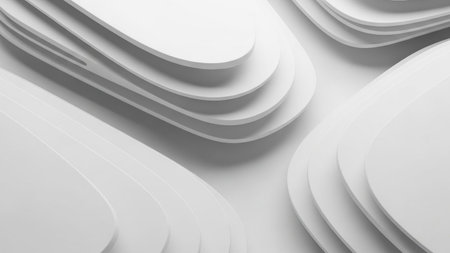 Minimalist abstract white layered organic shapes with soft shadows creating a clean and modern geometric background