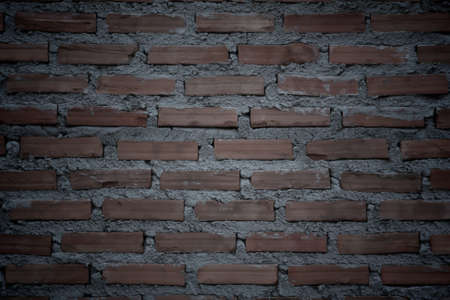 Weathered texture of stained old dark brown and red brick wall background, grungy rusty blocks of stone-work technology