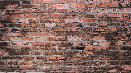 Brick texture old vintage background. Dirty aged and rust stone surface facade.