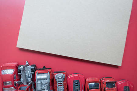 Colorful text Time to travel and children's funny toy plane on blue paper background. Copy space Top view Concept tourism, Template for postcard, greeting card Banner.