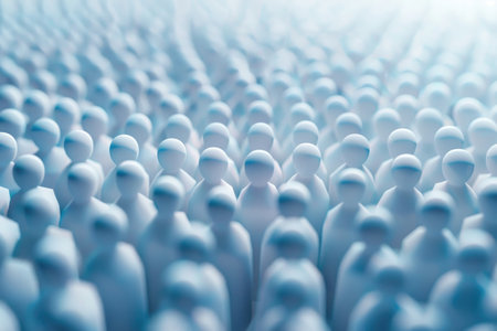 A crowd of abstract colorful figurines symbolizing diversity, inclusion, and teamwork. Represents equity, equality, and togetherness.