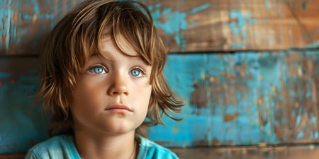A young child showing deep emotion tears flowing against vivid backdrop. Concept Emotional Portraits, Young Child, Tears, Vivid Backdrop