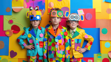 Colorful DIY dress-up fun with kids in paper suits and vibrant cardboard accessories