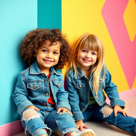 Joyful, Playful Children on Brightly Colored Backgrounds A Celebration of Diversity and Childhood