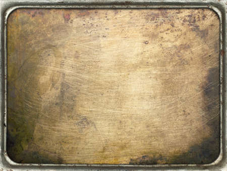 Brass plate texture in a frame Old metal background