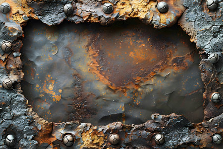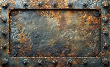 Worn industrial metal plate with bolts as a frame.