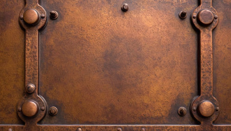 Brass plate texture. Old metal background with rivets.