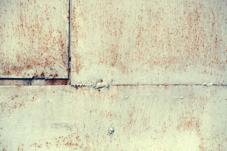 Iron rusty aged background with white old paint and welding