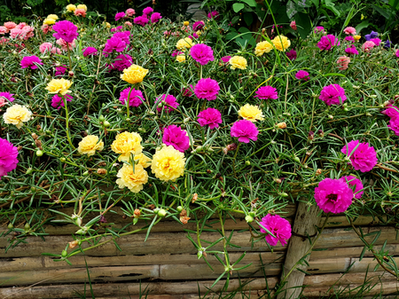 Blooming Purslane on the balcony, Beautiful multi-colored Purslane flowers, in the succulent family.
