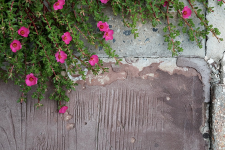 Common Purslane, Verdolaga, Pigweed, Little Hogweed, Pusley on rough concrete wall background