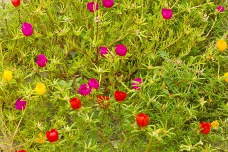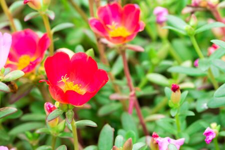 Colorful flowers of Portulaca oleracea that bloom in during the summer.
