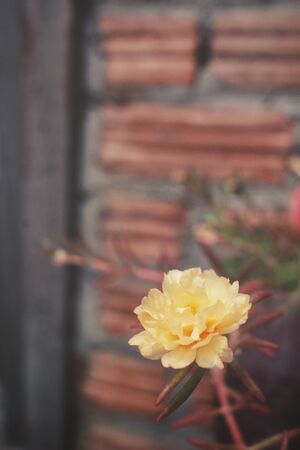 Beautiful portulaca grandiflora with vintage image style, Top view yellow flower portulaca oleracea.