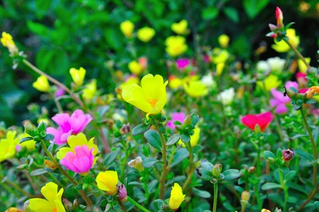 Portulaca grandiflora flowers at the garden in morning with natural background