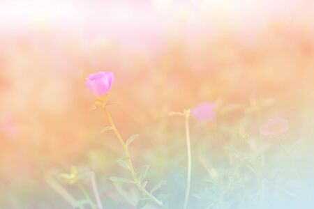 Beautiful small pink flower field with soft pastel background in sunny day,Common Purslane, Verdolaga, Pigweed, Little Hogweed ,Pusley flowers