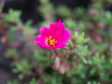 Beautiful pink portulaca oleracea flowers, also known as common purslane, verdolaga, little hogweed, red root, or pursley.