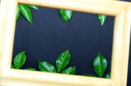 tropical nature green leaf in picture frame on black background