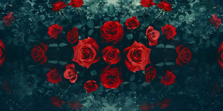 A stunning arrangement of vibrant red roses beautifully frames a dark background, perfect for romantic themes, celebrations, and elegant decorations.
