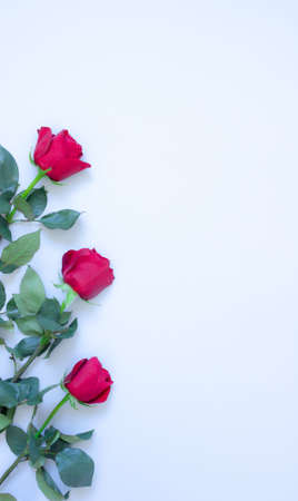 A beautiful arrangement of vibrant red roses on a soft white background, perfect for capturing the essence of romance and natural beauty. Ideal for various design themes.