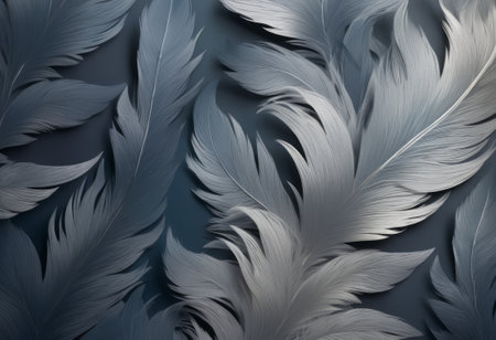 Monochrome feathers texture creating a soft background. Delicate and detailed feather pattern with a tactile quality.