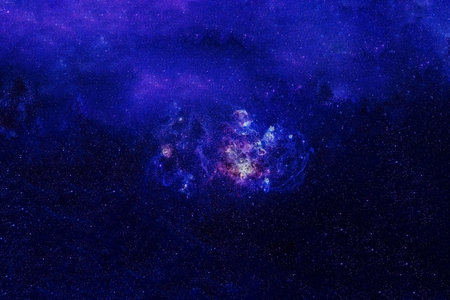 Bright Star Nebula. Distant galaxy. Infinite space background with nebulas and stars. Abstract image.