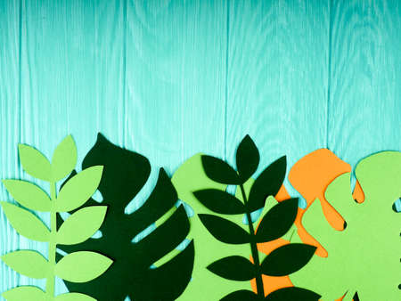Summer Tropical leaves, plants Frame. Paper cut style. Exotic summertime. Space for text. Beautiful dark green jungle floral background. Monstera.